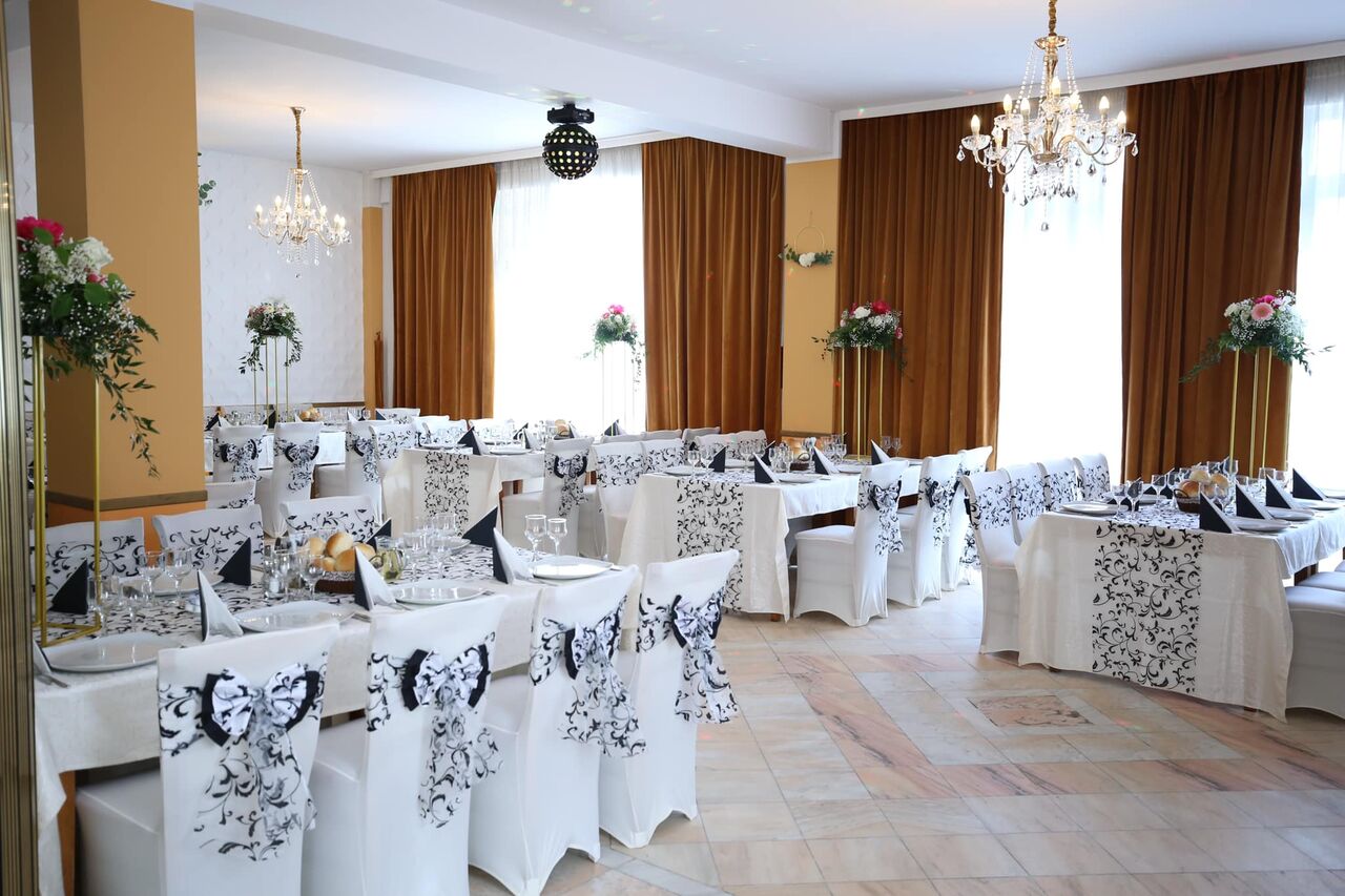 Pe lângă sala de evenimente, avem pentru tine tot arsenalul pentru organizarea evenimentului tău de la A la Z. De la meniuri adaptate tipului de eveniment până decorarea sălii în funcție de tematică și preferințe.